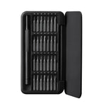 În set veți găsi 28 de tipuri de biți din 11 tipuri de bază - acestea includ șurubelnițe plate, Phillips, triunghiulare, în formă de Y și Torx. Aceste piese se vor dovedi utile în diverse activități și vor facilita, de exemplu, repararea smartphone-urilor, a camerelor digitale, a ochelarilor, a ceasurilor sau a jucăriilor mici.